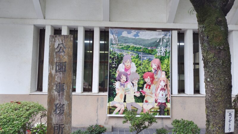 そして、何も知らずに歩いていると、2014年のアニメ「あの夏で待ってる」のタペストリーを目にしました。