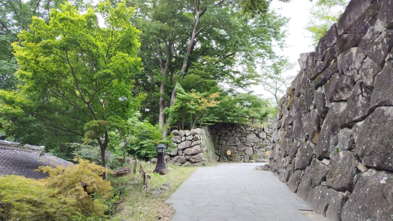 園内散策中は石垣も高いですし、起伏にも富んでいる地形、更に眼下に千曲川を見下ろすスポットもあるので、気付かなかったのですが、商店街から徐々に下っていく途中にあるんですよね。