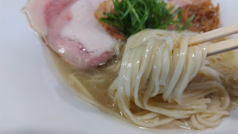 生パスタのような優しい食感で、あまりラーメン屋さんで食べた記憶がない食感なのが印象的です。