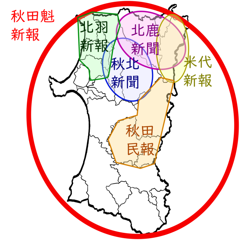 秋田県にある新聞社の分布