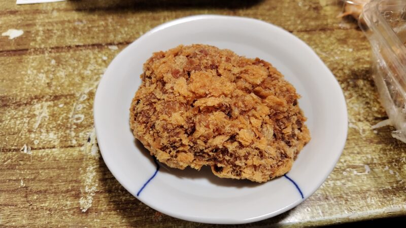 1個250円(税抜)とスーパーのお惣菜と比べるとやや高めですが、こちらも食べ応え抜群のボリュームです(写真ではあまり大きさが伝わらないのです…)。