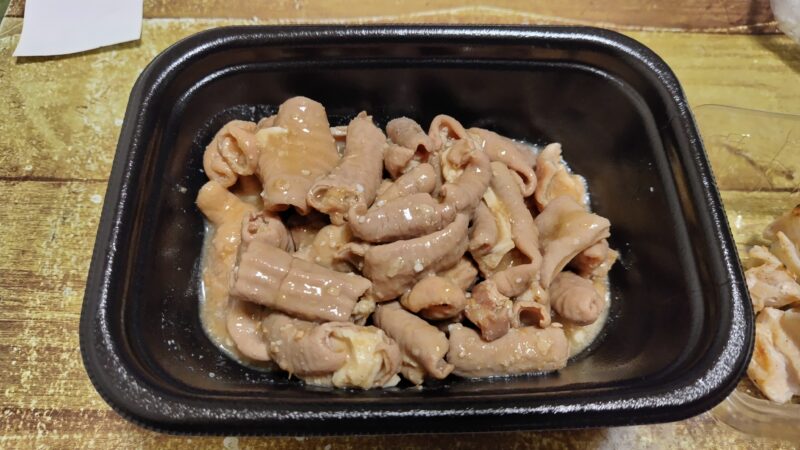 これも敢えて温めずに食べてみましたが、ホルモンは柔らかく煮込まれていて、余分な脂も落ちているため、冷めた状態でも十分美味しくいただけます。