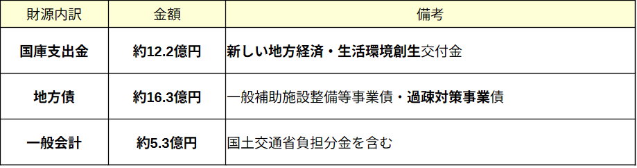 まず国からの交付金(国庫支出金)を手厚くいただき、地方債として後から国が多くの返済を肩代わりしてくれる”過疎対策事業債”など有利な条件の資金を活用することで、事業費のほとんどを賄ってしまいます。