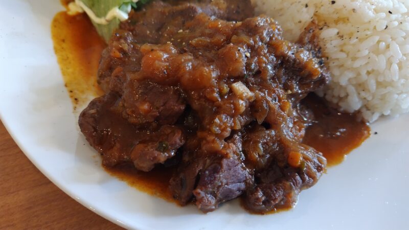 煮込みを単品で食べても美味しいですが、野菜と一緒に煮込まれてできたソースとご飯を一緒に食べると一層美味しく感じました。