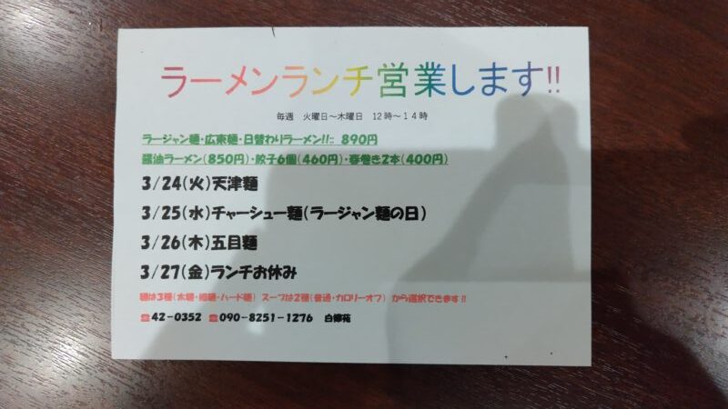 【しらかば苑】老舗中華料理屋さんのラーメンランチ|大館市桂城