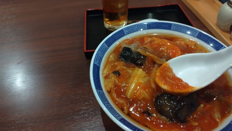 個人的には、スープにあんを溶きながら少しゆるくして食べ進めると適度な絡み方になるので、これが正解なのかなと思いました。