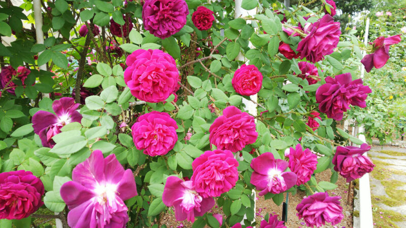 園内のバラは約500種類にも及び、多少の重複はありますが基本的には1品種1本で育てられているようです。そもそもバラにこれだけ多くの品種があることも知らなかった私たちにとってはそれすら驚きでした。