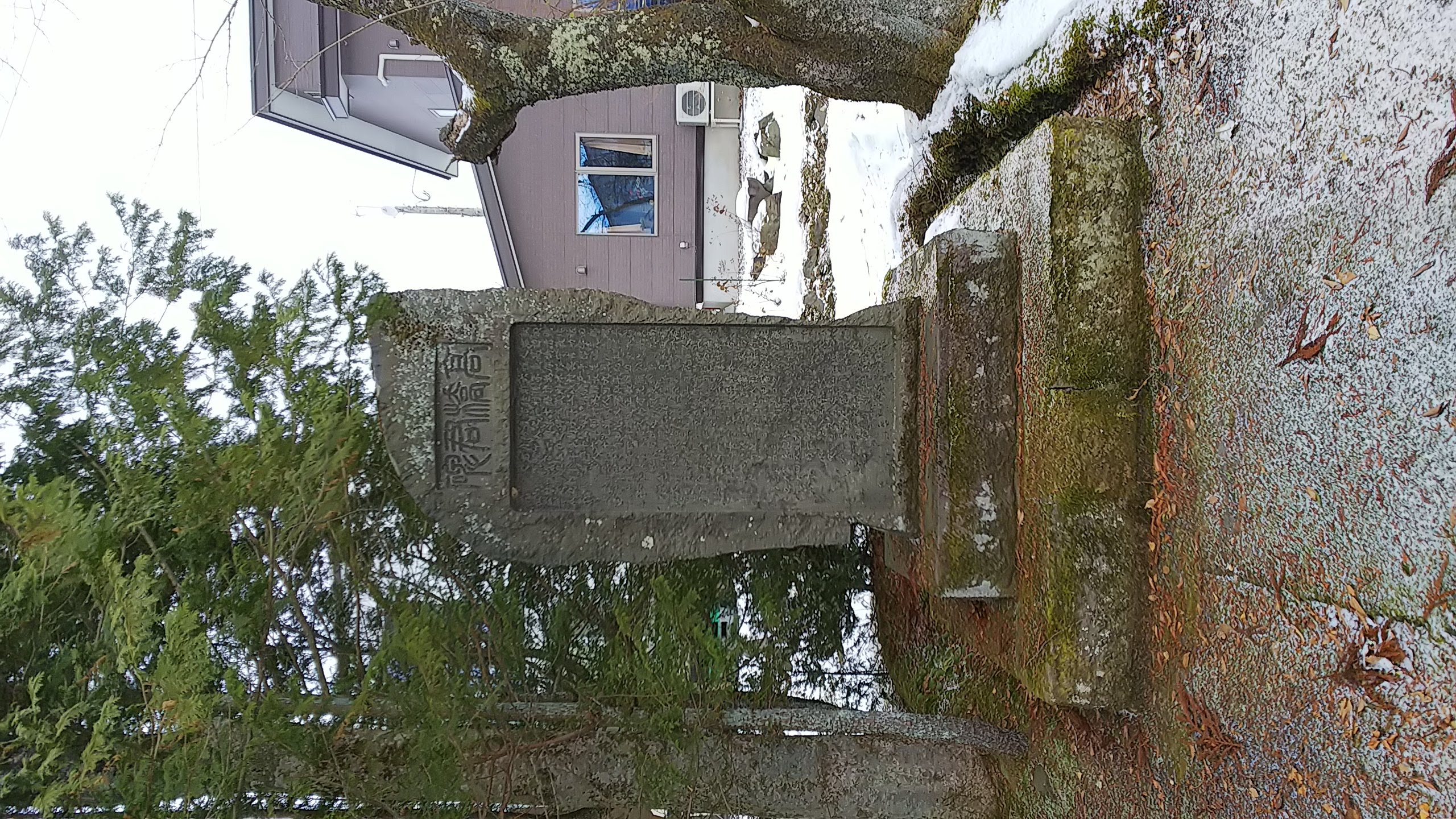 こちらは地域神社のために貢献された高橋宇吉郎様と、旧・綴子村開拓に尽力された奈良田喜左衛門様の記念碑です。後者は、当時この辺りを支配していた戦国豪族であった比内浅利氏とも関りがあったようですね。