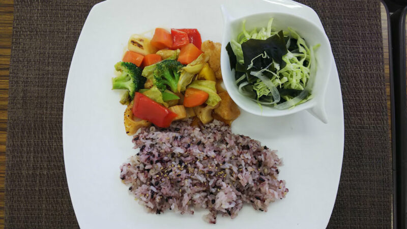 予算も料理の条件も限られた中で、ご飯・メインディッシュ・副材・デザートと1食が完結できるボリュームを実現しています。減塩とは謳いながらも、しっかり味を感じられて美味しく食べることができました。