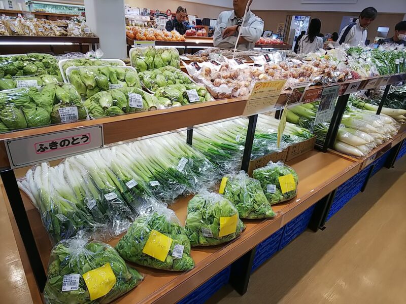 地元推しの菊芋(あまり馴染みのない野菜でしょうが、シャリシャリした食感が良いです)や、フキノトウまで。フキノトウはばっけ味噌用とまで別に紹介されており、そんな区分があったのかと驚きました。