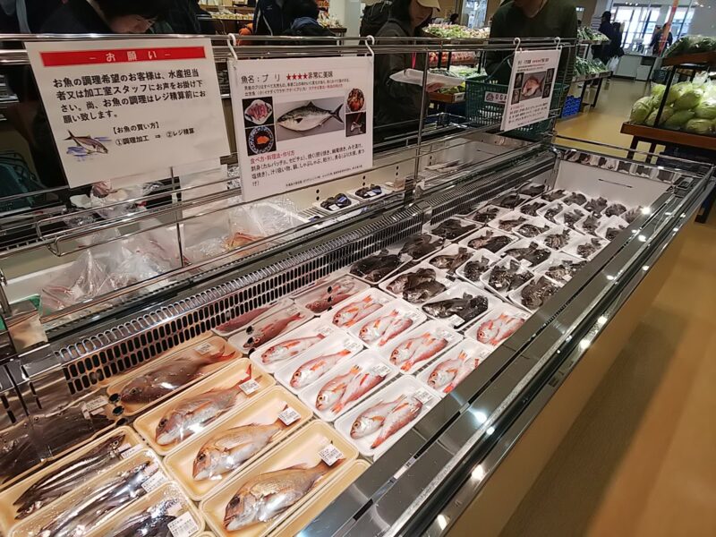 野菜・魚・お土産が非常に充実しています。また、レジ前には保冷バッグも販売されており、お一人様2個までですが保冷氷も無料で貰えるという配慮があります。せっかく新鮮な魚を買っても、帰るまでにダメになったらつまらないですからね。
