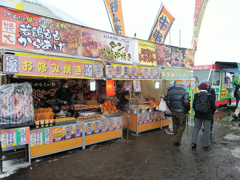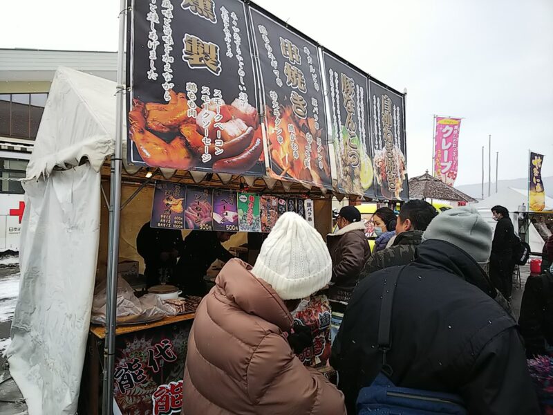 この他にも、地元の”菓子舗一ノ関”さんとか”馬太郎”さん、北秋田市からも”肉のまつお”さん、”庄司さかな屋”さんなど多数出店されていました。また、能代市・鹿角市からも出店があり、県北のグルメ勢揃いと言った様相です。