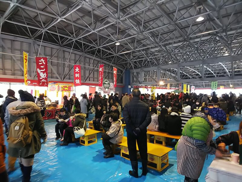 体育館のキャパシティを考えると、もう少し出店が少なくても良いかもしれません…。賑わい感はすごいものがあるのですが、小さな子供を連れて食事となると、テーブルが欲しいと思いました。