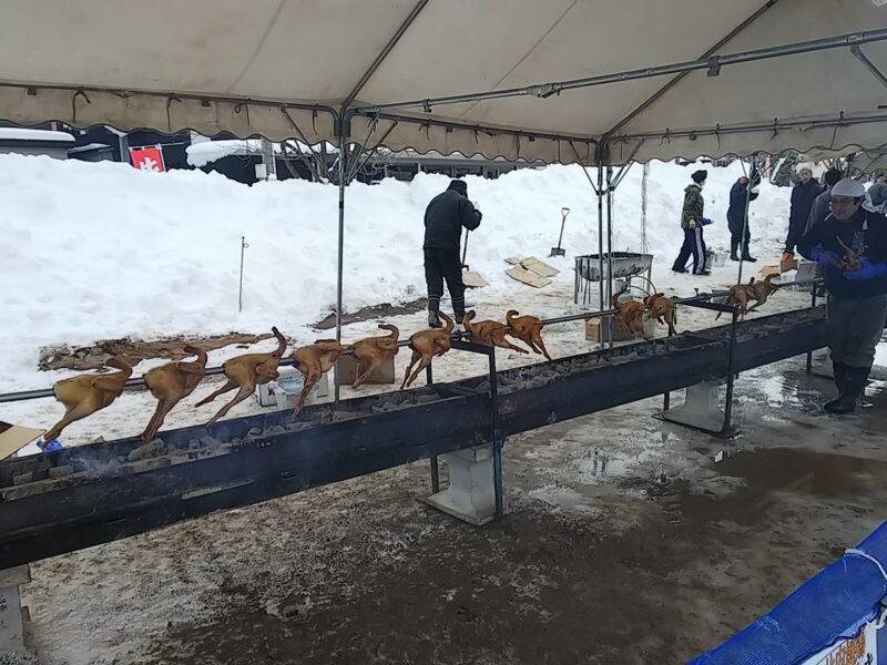 1羽4,200円・半身2,400円です。皆さん、お土産に買うようで、引っ切り無しに列ができていました。大館のイベントでは結構定番になっていますね。